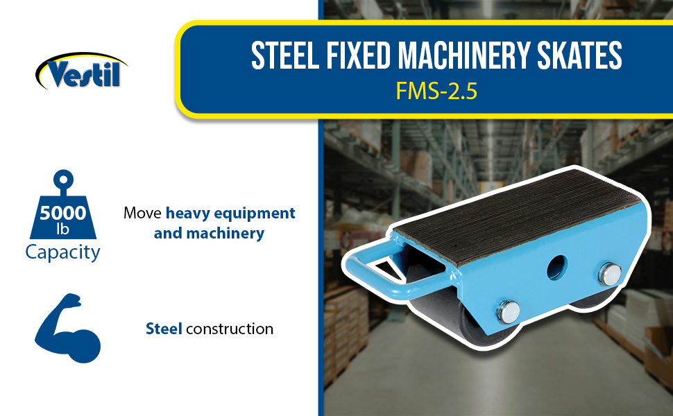 FMS-2.5 FMS-2.5Steel Fixed Machinery Skates 10-3/4 In. x 4-3/4 In. x 4 In. 5,000 Lb. Capacity BlueUniform Capacity (tons): 2.5