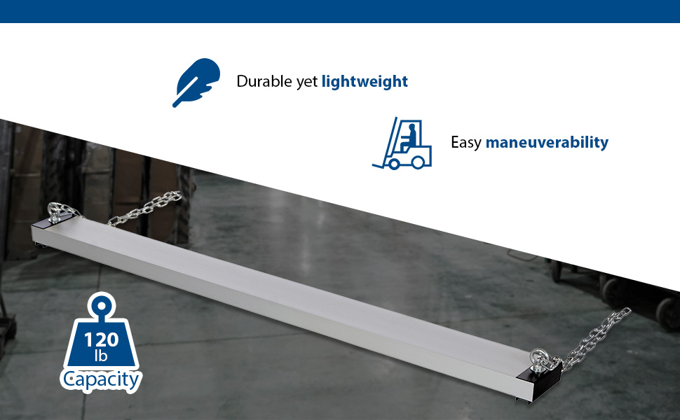 HDFMS-48 HDFMS-48Steel Forklift Heavy Duty Sweeper Magnet 48 In. Sweep Width 100 Lb. Capacity SilverUniform Capacity (lb.): 100