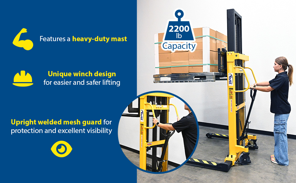 | Steel Stacker Manual Pump 3 - 17 In. 1,500 - 2,000 Lb. Capacity Black / Yellow | Uniform Capacity (lb.): 2,000 Service Range (in.): 3 to 17 | 696 |