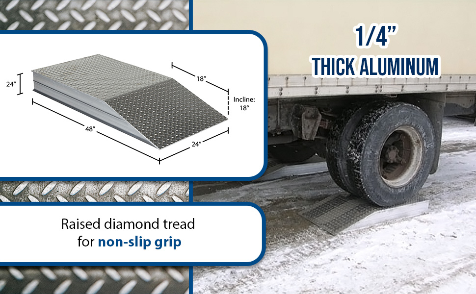 | Aluminum Tread Plate Wheel Riser with Roll Off Guard 78 In. x 24 In. x 12 In. 30000 Lb. Capacity Silver | Uniform Capacity (lbs.): 30000 | 193 |