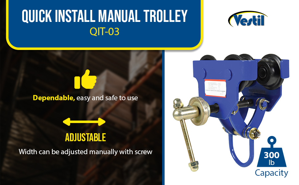 QIT-10 QIT-10Steel Quick Install Manual Trolley 13-5/8 In. x 20-3/16 In. x 20-3/8 In. 10000 Lb. Capacity BlueUniform Capacity (lb.): 10,000