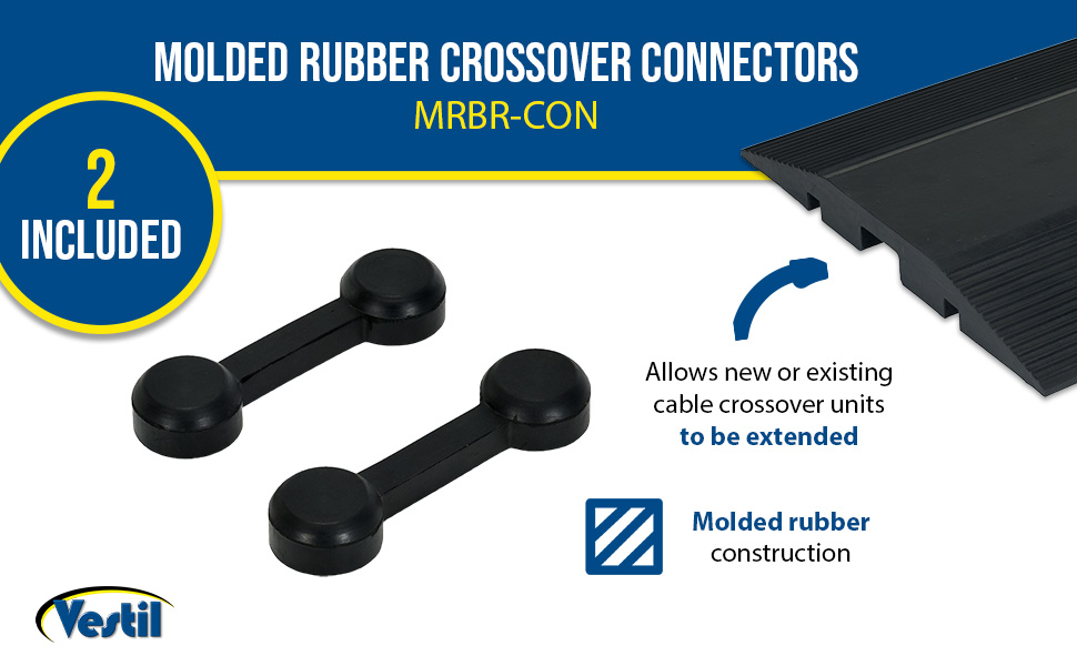 Designed to protect cables and hoses from pedestrian and rolling traffic. The top surface of each crossover includes serrations for extra traction. Optional connectors may be used to interlock individual units together to form wider crossovers. Simply lock together as many units as required.