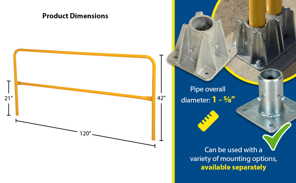 Steel Pipe Railing Barricade Base with Feet Yellow | 90 Days Limited Warranty | 6 |