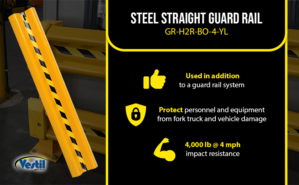 GR-H2R-BO-4-YL GR-H2R-BO-4-YLSteel Straight Guard Rail 48 In. Length YellowMounting Posts Required (qty.): 2