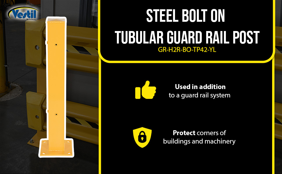 GR-H2R-BO-TP42-YL GR-H2R-BO-TP42-YLSteel Bolt On Tubular Guard Rail Post 2 Ribbed 42 In. Length…65