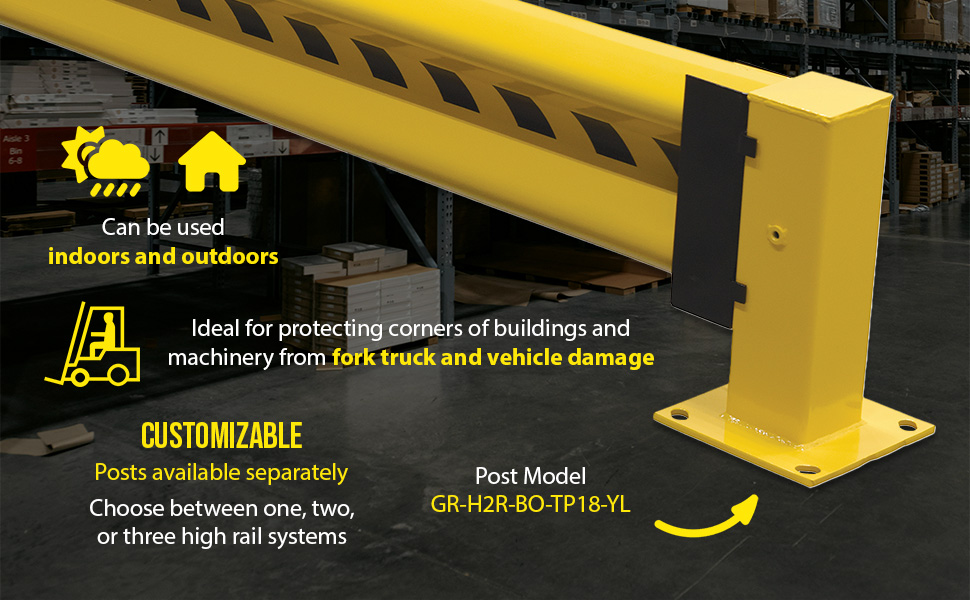 GR-H2R-BO-3-YL GR-H2R-BO-3-YLSteel Straight Guard Rail 36 In Length YellowMounting Posts Required (qty.): 2