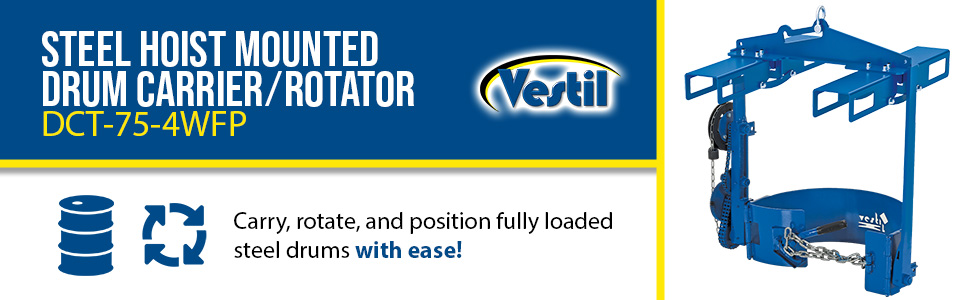 DCT-75-4WFP DCT-75-4WFPSteel Hoist Mounted Drum Carrier/Rotator with Four Way Pocket 55 Gallon 800 Lb. Capacity BlueUniform Capacity (lb.): 800