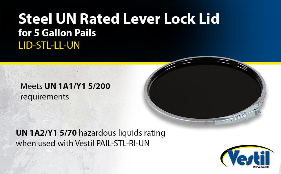 LID-STL-LL-UN LID-STL-LL-UNSteel UN Rated Lid And Lever Lock Combo For 5 Gallon Bucket BlackGauge: 24