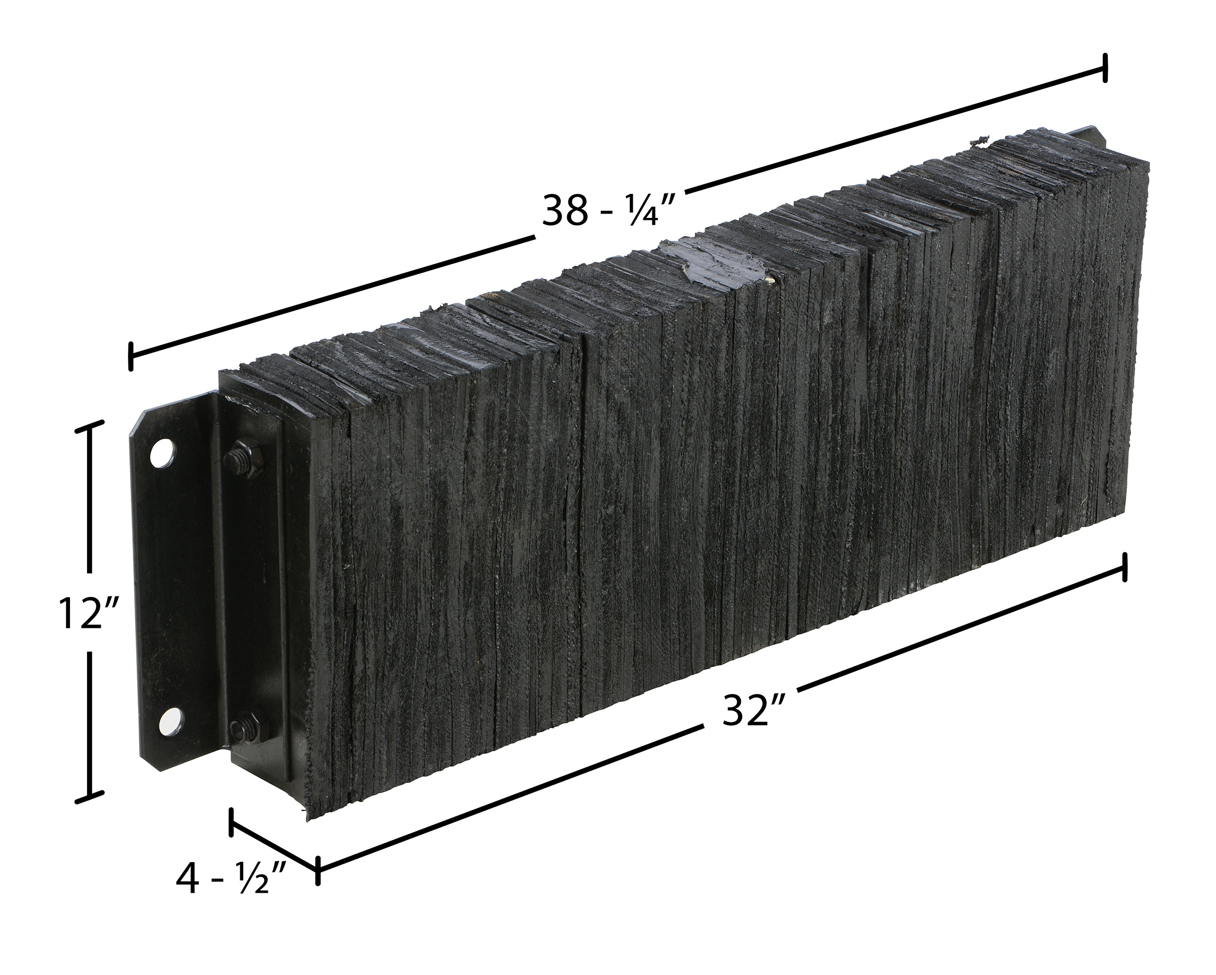 The laminated Dock Bumper provides durable, economical protection for loading docks and trailers. This unit is constructed of fabric reinforced rubber from recycled truck tires. The pads are laminated between painted structural angles and held together with steel tie rods. The width is bolt hole center to bolt hole center. Installation hardware sold separately.