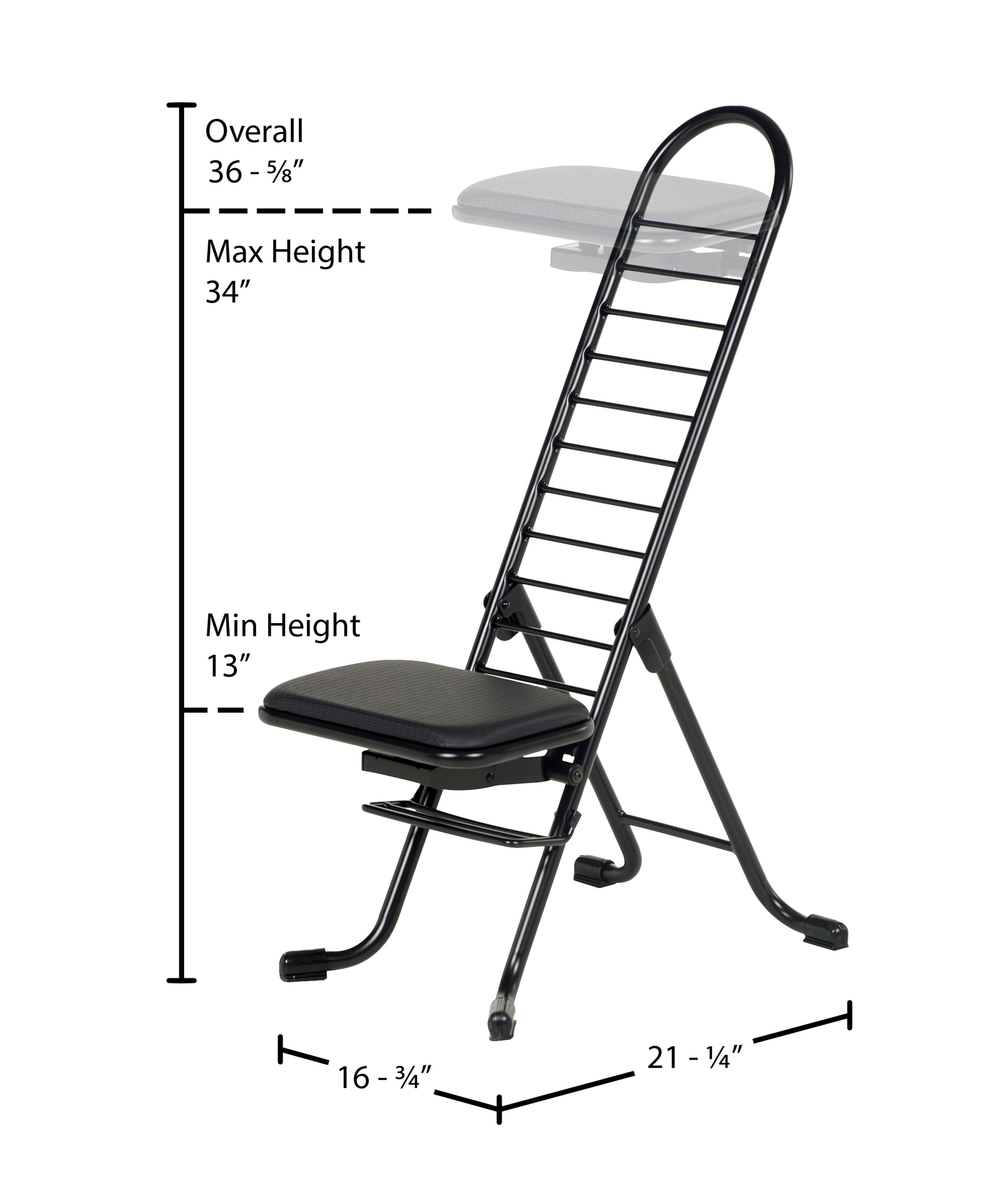 The Ergonomic worker seat allows individuals to go from a low crouch position to a standing position. The seat height can be adjusted by moving the seat and hooking in to the horizontal bars located on the chair frame. The unit has four rubber "shocks" under the seat base that allow the seat to tilt forward, left, and right so it can accommodate your body movements. The front tilted position of the seat helps the user maintain the natural posture position of the spine. Footrest included.