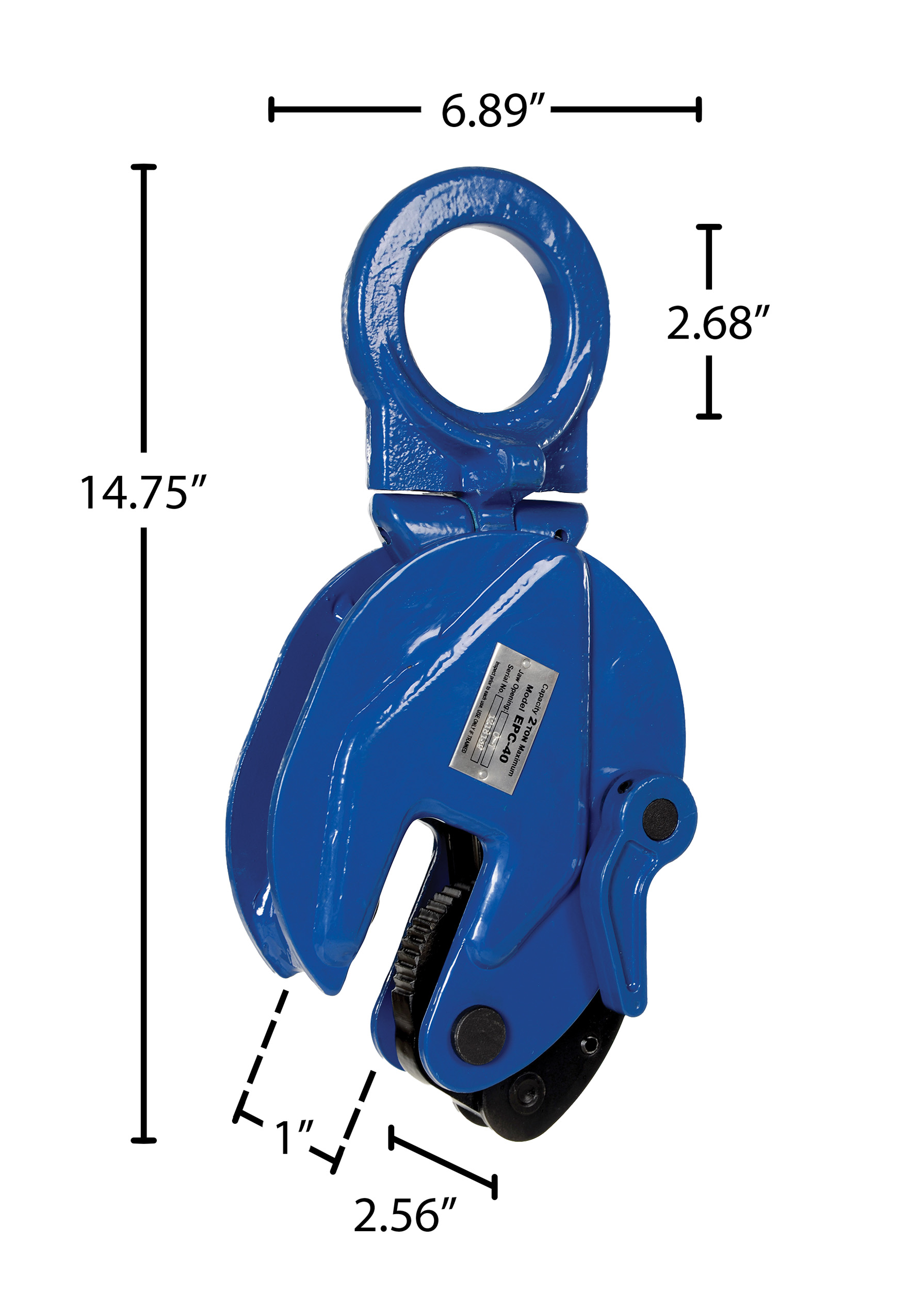 The vertical plate clamp has a pivoting bale for easier and more versatile operation. Features include an automatic serrated hardened steel cams and pads and a drop-forged steel case for maximum strength. Warning: do not exceed the working load limit. Serious bodily injury or property damage may result. Lift only one clean and oil free plate at a time. Not designed to use on stainless steel or aluminum plates. For use with materials with a surface hardness of 30 RC (300 HB).