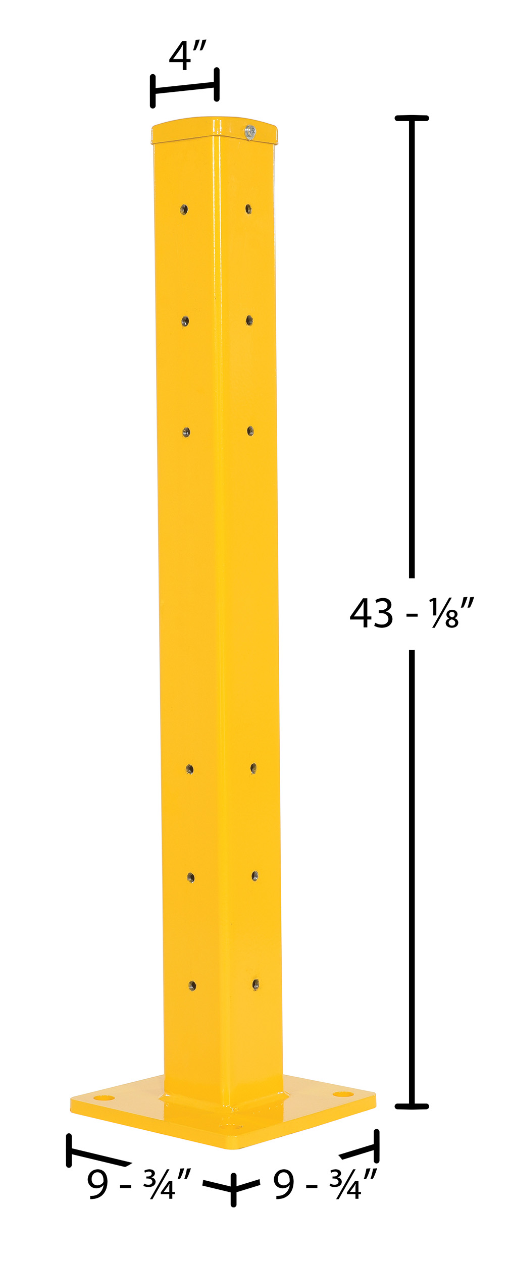 Steel Rigid Tube Post Bolt On Style 3-1/24 In. For 3 Ribbed Bolt On Style Guard Rails YellowProtecting equipment, inventory, and most importantly individuals from damage or injury is always a concern. But, with a structurally strong guard rail those worries can be eased. Rails have 3 ribs for impact resistance both indoors and out. A bolt-on style rail design allows the user to fasten the rails securely in place. Powder coated finish for built in added toughness. Additional posts are available and sold separately. If adding a rail to an existing rail and post section, only a single post is needed.