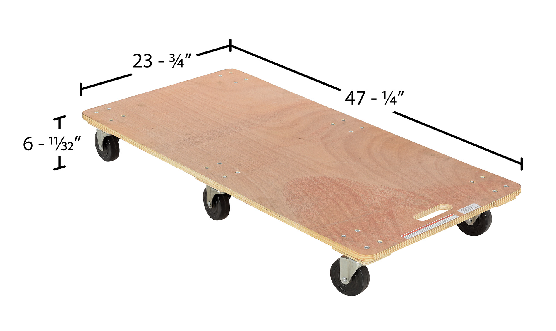 The oversized Hardwood dolly is great for moving larger items. The solid deck design also allows for use with smaller packages. Manufactured from durable thick plywood components with a hand hole for carrying the dolly. The dolly is a non-tilting style and maneuvers easily on casters.