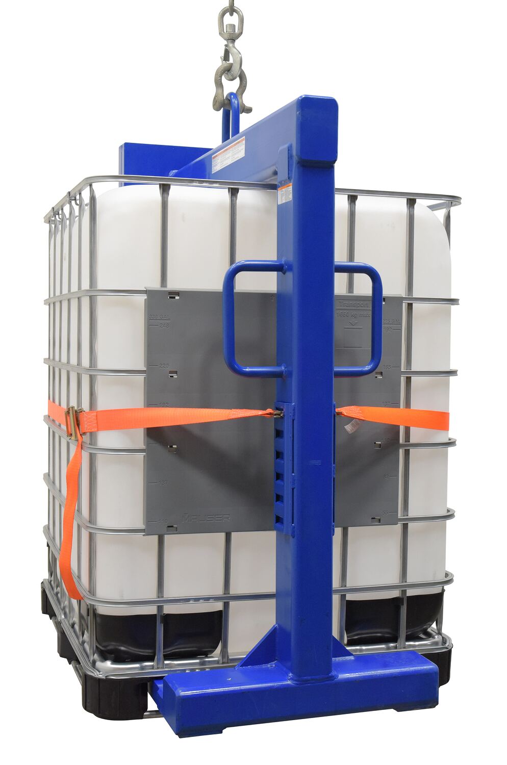 Give your products more security with the addition of the optional tie down track. The track is constructed of steel and includes six slots, allowing the user to position the (included) strap at varying heights. The design minimizes set up time, while increasing user safety. With the track welded to the vertical post of the pallet lifter, straps can then be quickly secured to the track and around many products.