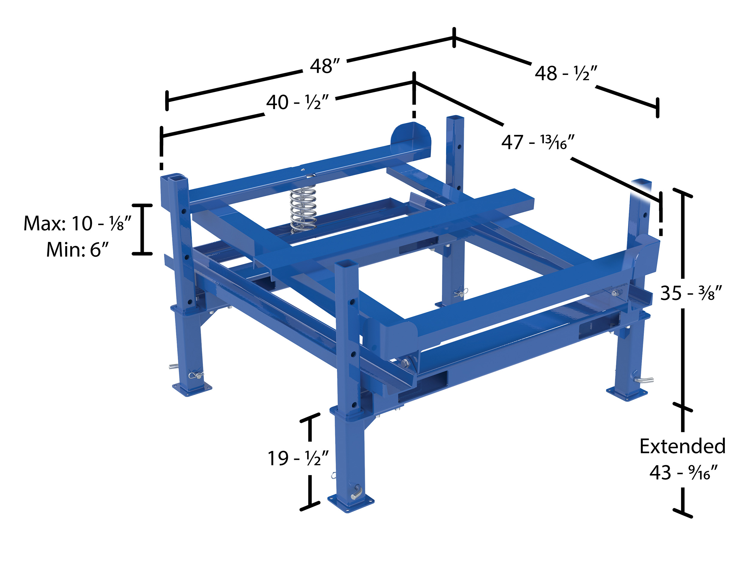 Steel Intermediate Bulk Container Tilt Stand with Fork Pockets and Adjustable Legs 48-1/2 In. x 49-1/2 In. 4400 Lb. Capacity Blue