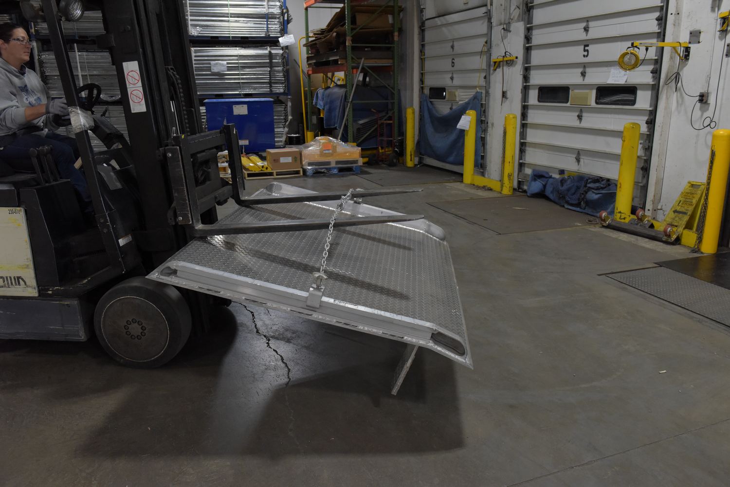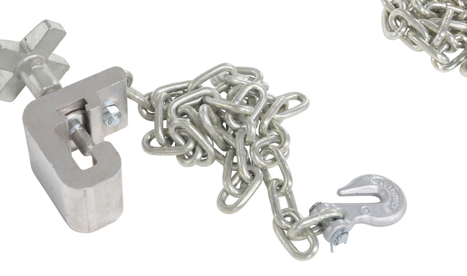 Steel Curb Lifting Chains 42 In. Length For Aluminum Dock Boards SilverA lifting chain minimizes the manual labor associated with maneuvering heavy oversized dock boards. The chains provide a central point to be securely grasped by a lifting device, such as a fork lift. A bracket with a knob for quick hand tightening is included and can be attached to the side of a dock board to assist with the chain tightening.