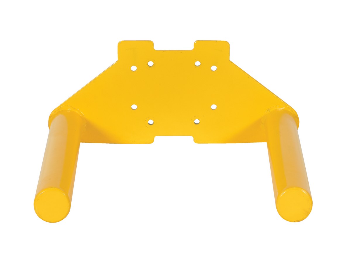 The double spindle attachment is designed of a strong construction for lifting rolls of material and other hollow cylinder objects. A simple installation allows the user to obtain immediate use and diminishes the grind of bending and lifting heavy objects. A bright yellow finish promotes safety and visibility while transferring units.