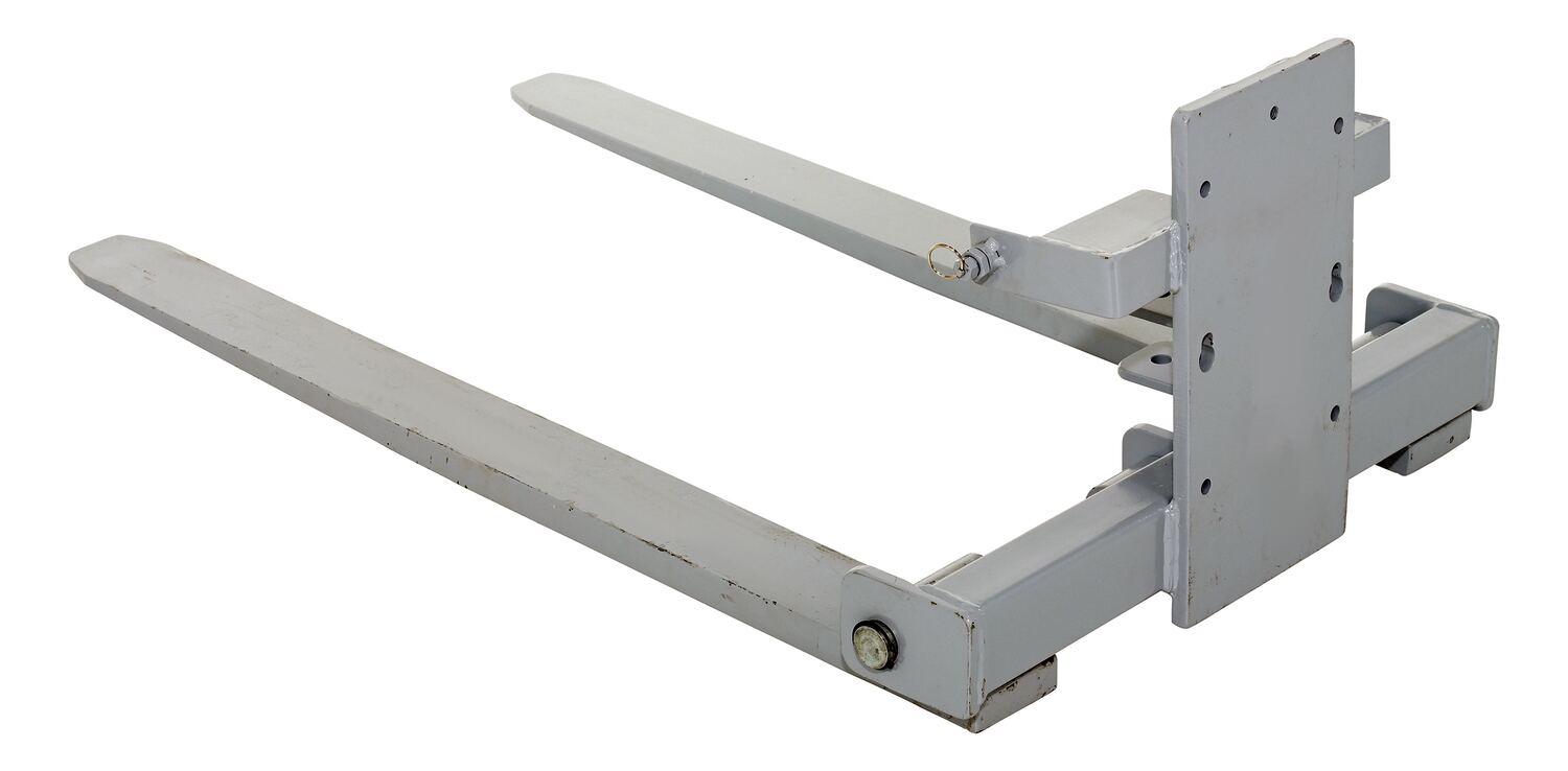 Sometimes the entry point on pallets can be spaced differently, making it awkward if your forks are in a fixed position. Thankfully there is an easy solution. The adjustable fork attachment! The forks can be maneuvered to a position that better fits the users’ needs depending on each situation. Each fork lays flat making it perfect for lifting and maneuvering pallets or skids!