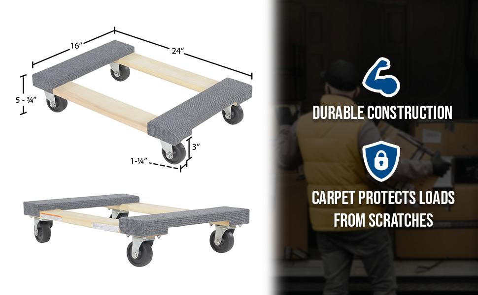 HDOSC-1624-12 HDOSC-1624-12Hardwood Carpeted Dolly 24 In. x 16 In. x 6-3/4 In. 1200 Lb. Capacity TanUniform Static Capacity (lb.): 1,200