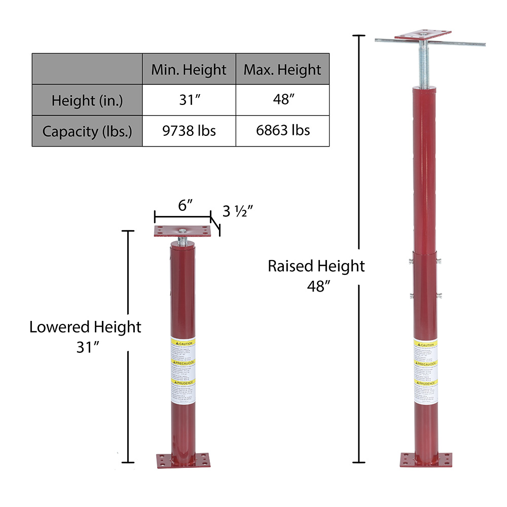 FJB-48 FJB-48Steel Basement Floor Jack 48 In. Maximum Height 6,863 Lb. Capacity RedHeight Minimum/Maximum (in.): 31 to 48