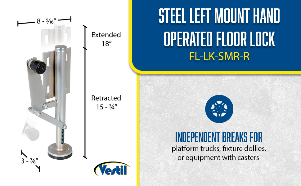 FL-LK-SMR-L FL-LK-SMR-LSteel Left Mount Hand Operated Floor Lock 10 to 12 In. Height SilverMounting Height (in.): 10 to 13-7/8