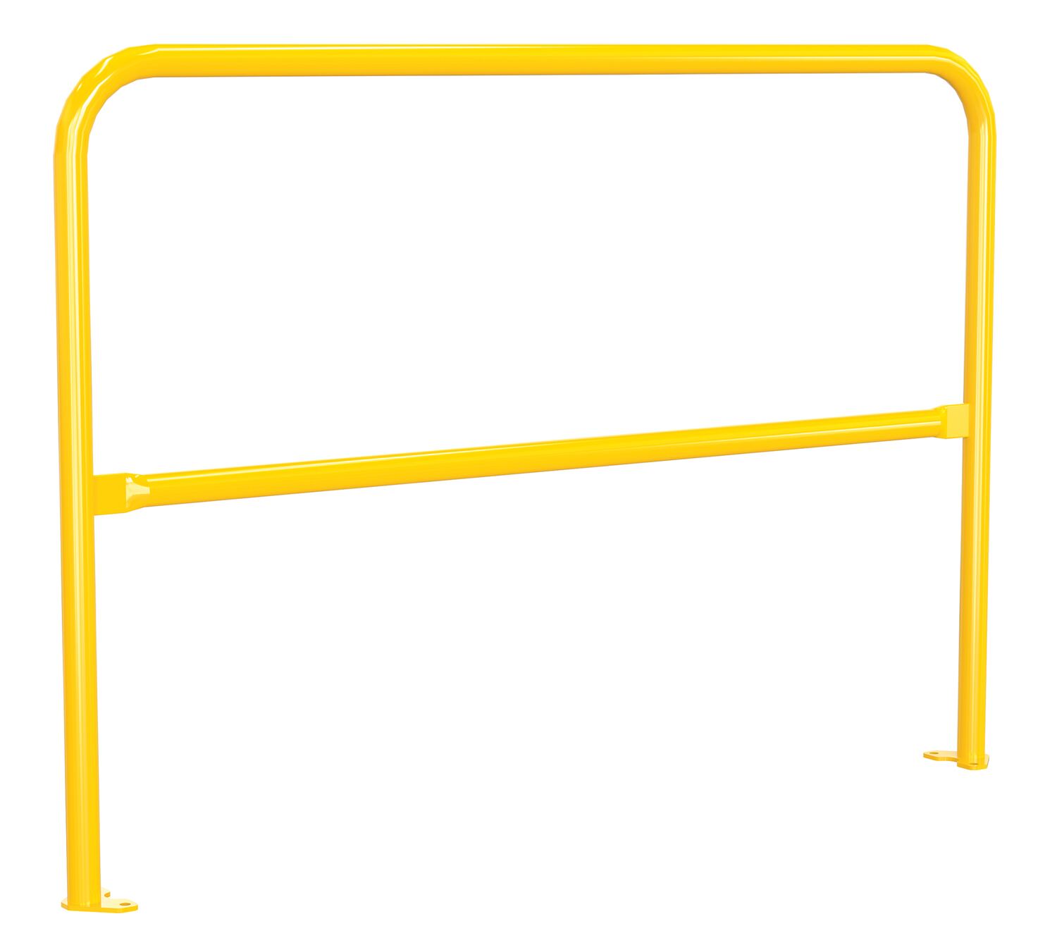 The pipe safety railing adds protection to pathways and dock areas. The base plate not only allows for a quick installation but also gives the steadiness and strength that is needed from a safety railing. With this mounting style the unit can be permanently installed or moved between locations. The upper and lower design gives the user stability and protection against potential falls. Powder-coated yellow finish. The VDKR series safety rail products comply with U.S. Occupational Safety and Health Administration (OSHA) General Industry requirements for guardrail systems in 29 CFR 1910.29.