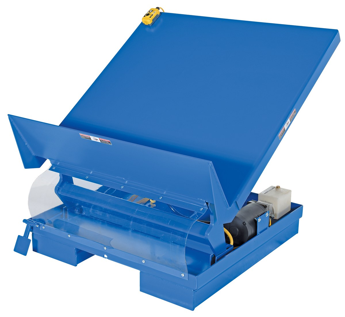 The portable Uni-Tilt can transport your tilter from workstation to workstation quickly and easily with a fork truck. Usable fork pockets 2-1/2"H x 7-1/2"W with 24" fork centers. The unique design reduces fatigue by minimizing repetitive bending and stretching required to obtain components from containers. The platform has a high lip the tilt side and a selector pedal that allows the operator to lift while tilting or tilt then lift. The unit has a hand pendant control standard and optional voltages available.