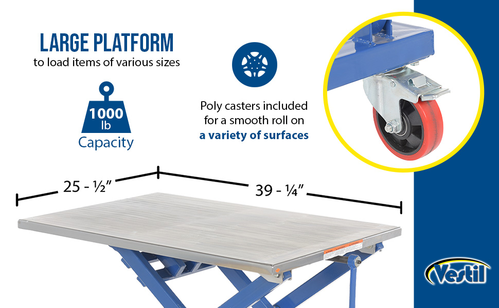 CART-1000-M CART-1000-MSteel Mechanical Scissor Cart 25-1/2 In. x 39-1/4 1000 Lb. Capacity BlueUniform Capacity (lb.): 1,000