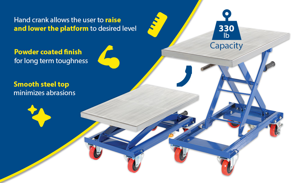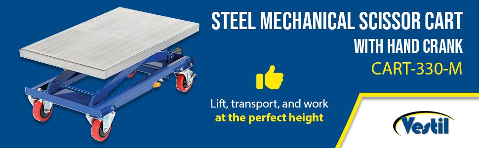 CART-330-M CART-330-MSteel Mechanical Scissor Cart with Hand Crank 17-3/4 In. x 27-1/2 In. 330 Lb. Capacity Blue/SilverUniform Capacity (lb.): 330