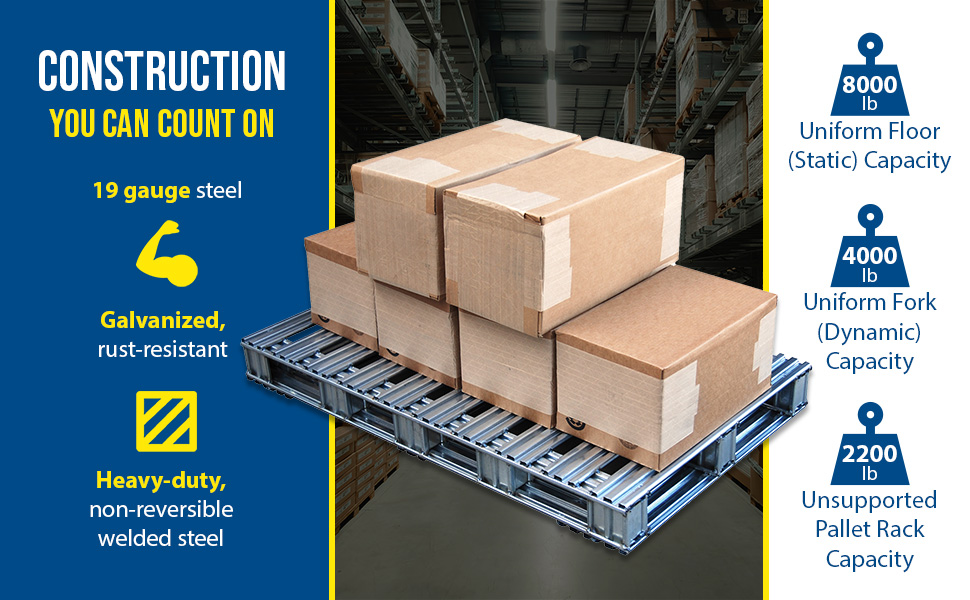 SPL-4048 SPL-4048Galvanized Steel Pallet 48 In. x 40 In. x 4-3/4 In. 8,000 Lb. Floor Capacity GrayUniform Floor (static) Capacity (lb.): 8,000