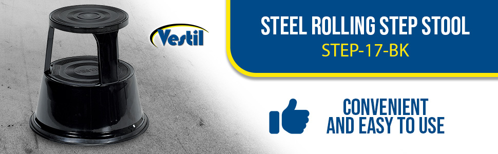 STEP-17-BK STEP-17-BKSteel Rolling Step Stool 17 In. Top Step Height 500 Lb. Capacity BlackUniform Capacity (lb.): 500
