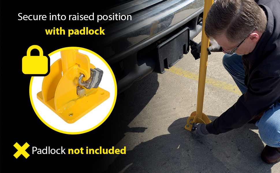 • Locked in the raised position with a padlock in order to secure a specified area