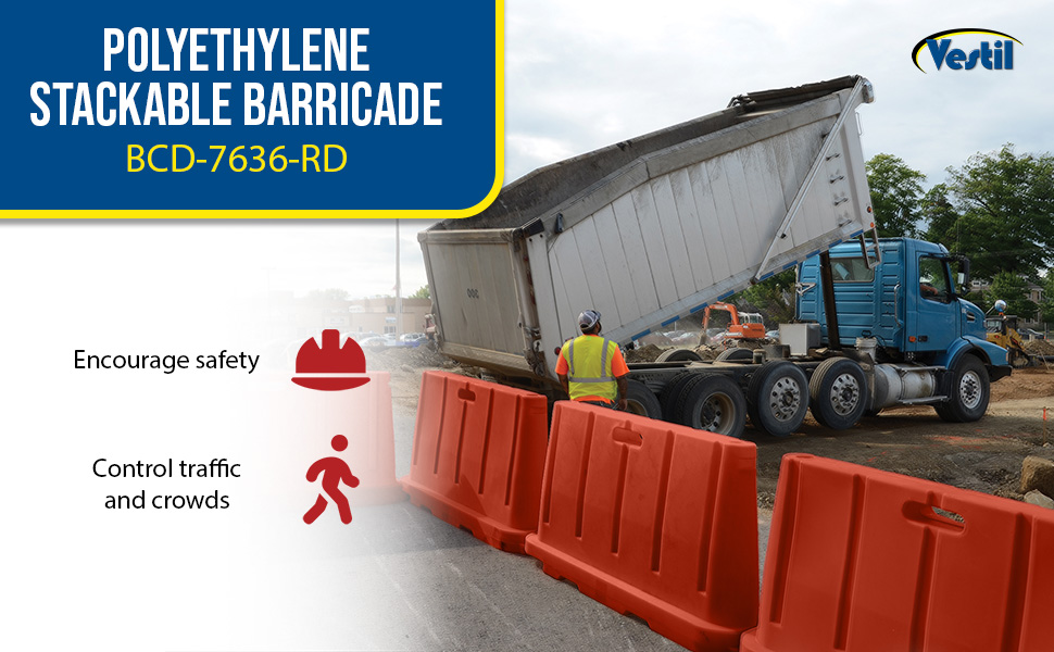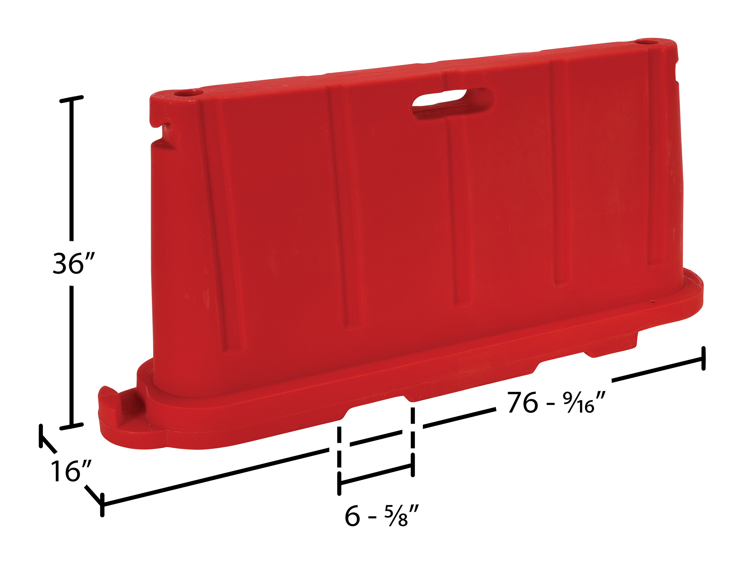 BCD-7636-RD BCD-7636-RDPolyethylene Stackable Barricade 76-1/2 In. x 16 In. x 36 In. RedMaterial Thickness (in.): 0.15