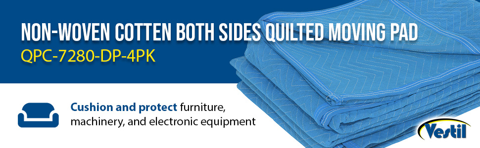 QPC-7280-DP-4PK QPC-7280-DP-4PKNon-Woven Cotton Both Sides General Duty Quilted Moving Pads 80 In. x 72 In. x 1 In. 4 Pack BlueStyle: Standard