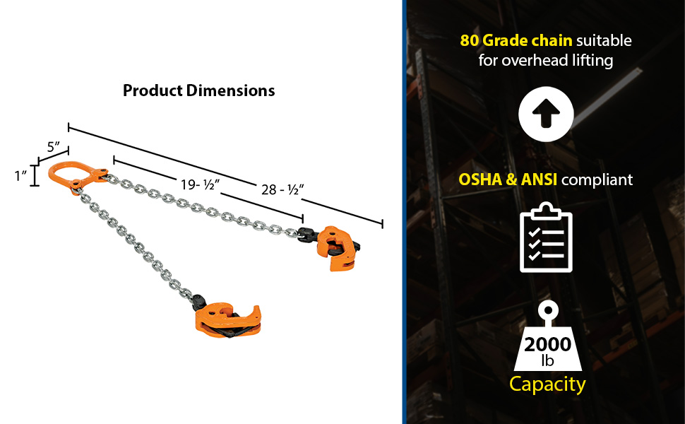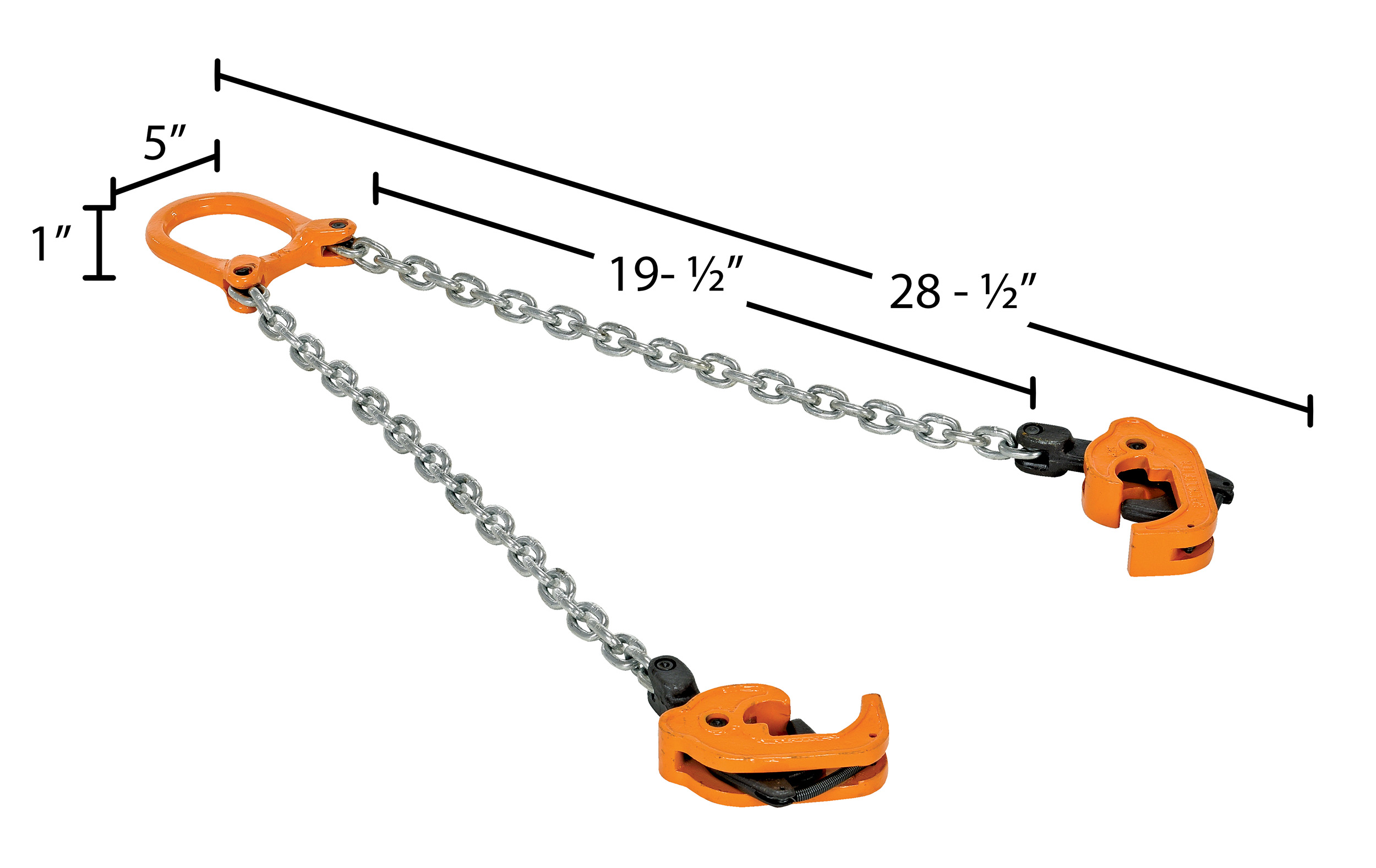 Designed for easy drum lifting and transporting operations with an overhead lifting device. Constructed of grade 80 chain for OSHA & ANSI compliance. Easy to use design. Drum clamps include spring-loaded latch for positive drum grip. For use with closed head steel and plastic 30 and 55 gallon drums with a top lip.