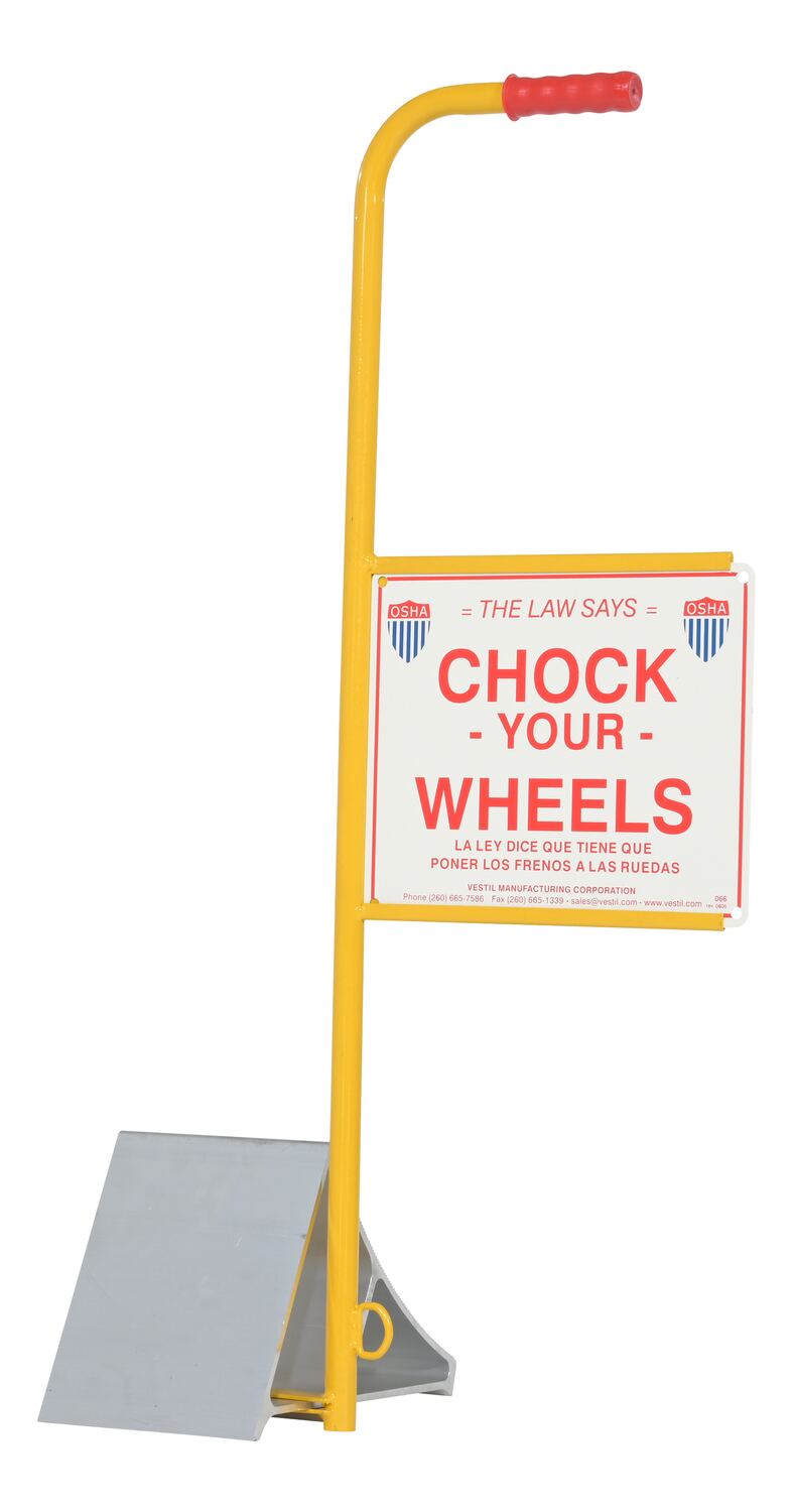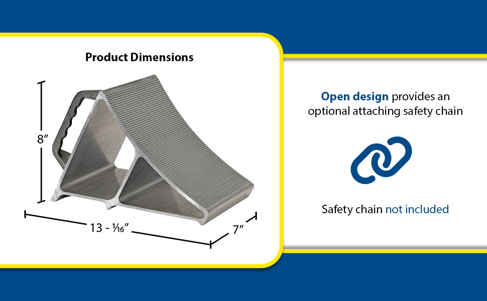 EALUM-7-HS EALUM-7-HSAluminum Wheel Chock with Handle and Sign 7-11/16 In. x 20-11/16 In. x 37-1/16 In. Silver/YellowUsable Chock Width (in.): 7