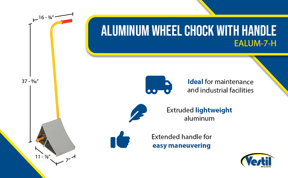 EALUM-7-H EALUM-7-HAluminum Wheel Chock with Handle 11-7/8 In. x 17-1/16 In. x 37-9/16 In. SilverUsable Chock Width (in.): 7