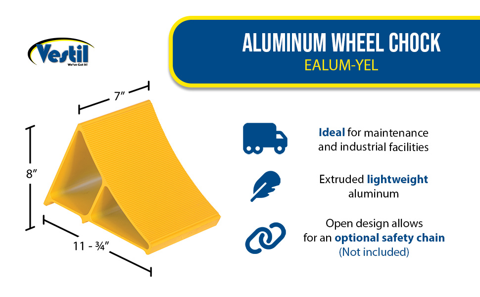 EALUM - The Aluminum Wheel Chock is ideal for the maintenance and industrial facilities. The functional design allows the user to brace the wheels, preventing the unit from moving and jostling. The open construction provides an efficient way of transporting.