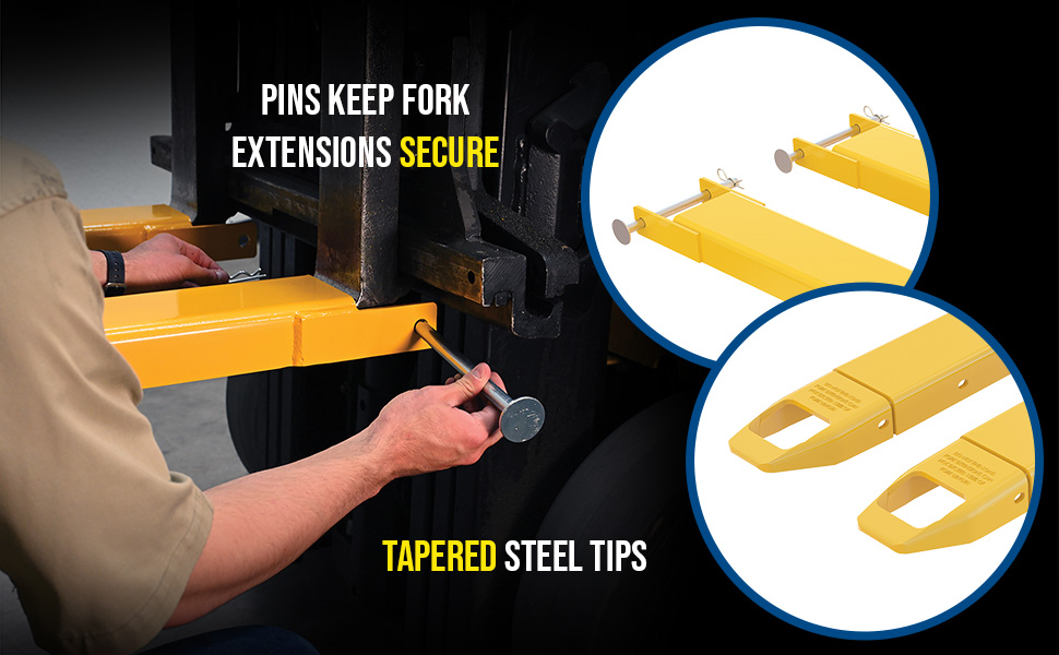 FE-5-96-P FE-5-96-PSteel Pin Style Fork Extensions 5 In. x 96 In. 4,000 Lb. Capacity YellowUniform Capacity Per Pair (lb.): 4,000