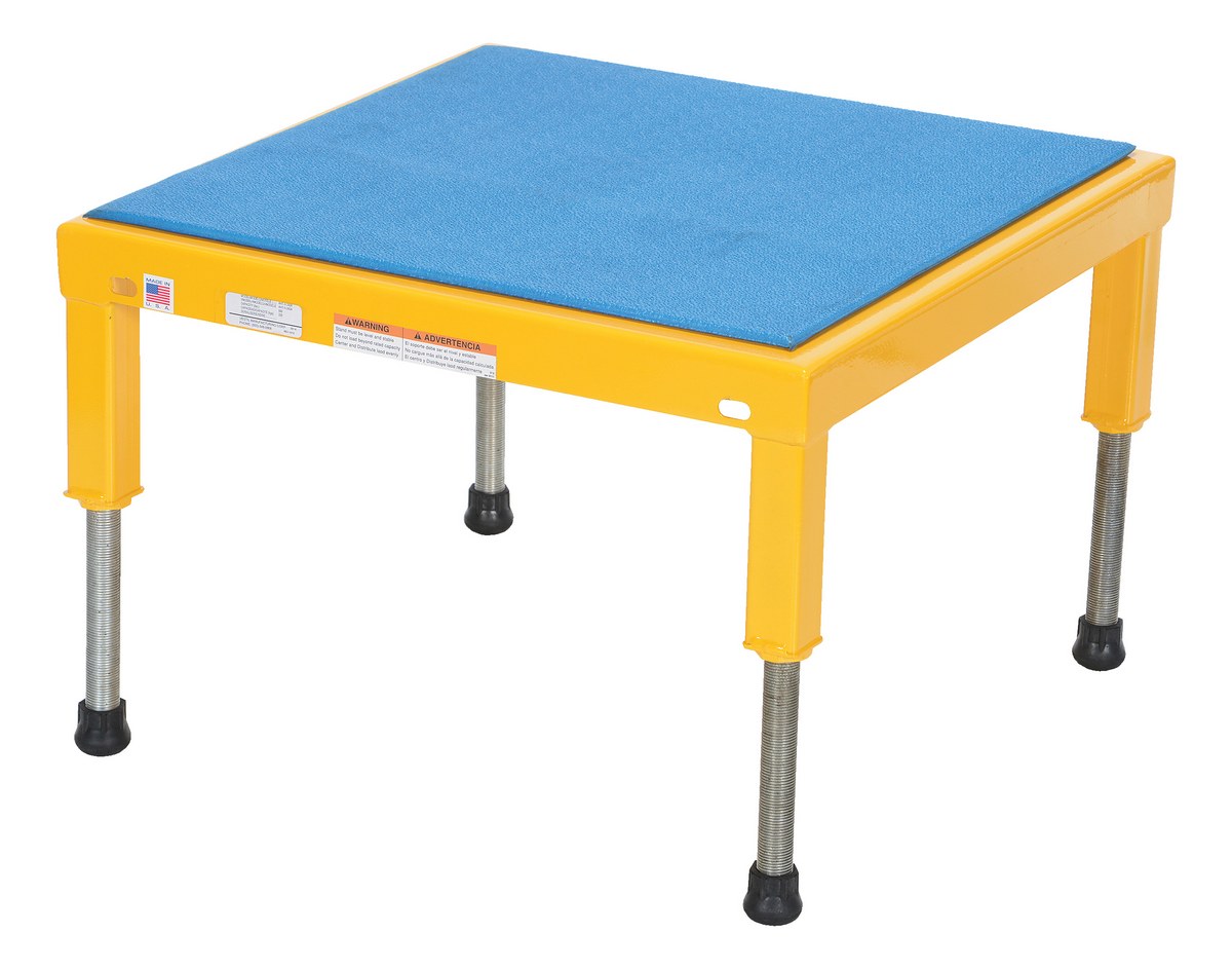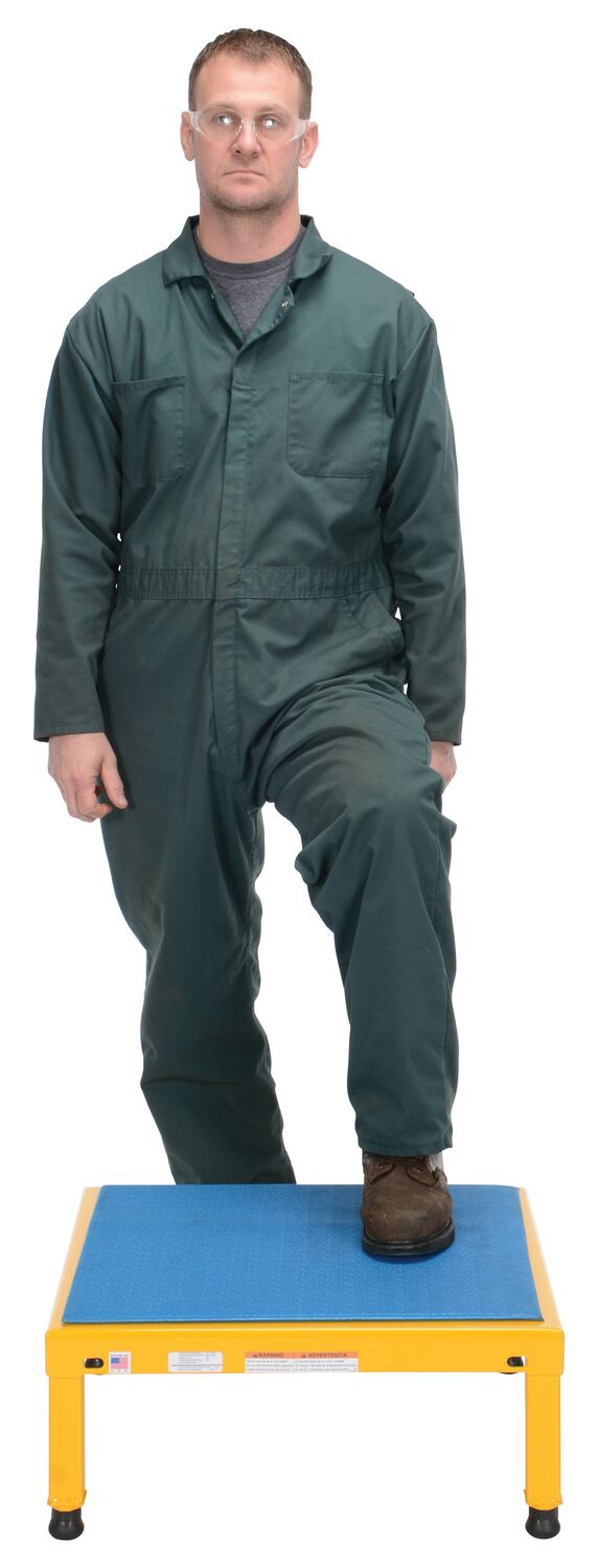 The adjustable work-mate stand minimizes fatigue by elevating workers to heights that are comfortable and ergonomically correct. Especially useful when multiple shift employees operate the same piece of machinery. The ergonomic matting deck style provides comfort for the operator who stands all day. The height of each leg can be adjusted individually to ensure proper working height.