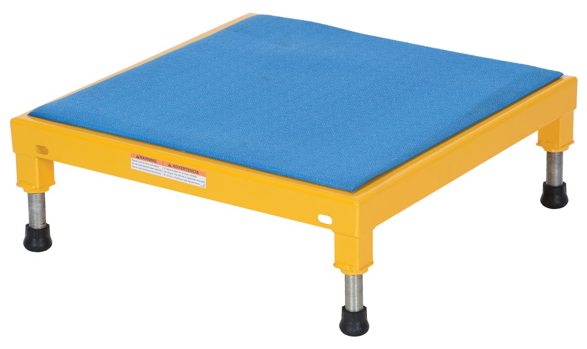 The adjustable work-mate stand minimizes fatigue by elevating workers to heights that are comfortable and ergonomically correct. Especially useful when multiple shift employees operate the same piece of machinery. The ergonomic matting deck style provides comfort for the operator who stands all day. The height of each leg can be adjusted individually to ensure proper working height.