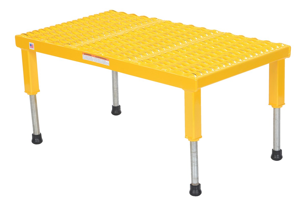 Steel Adjustable Work-Mate Stand 35-1/4 In. x 19-9/16 In. x 10-1/2 In. 500 Lb. Capacity YellowThe adjustable work-mate stand minimizes fatigue by elevating workers to heights that are comfortable and ergonomically correct. Especially useful when multiple shift employees operate the same piece of machinery. The height of each leg can be adjusted individually to ensure proper working height.
