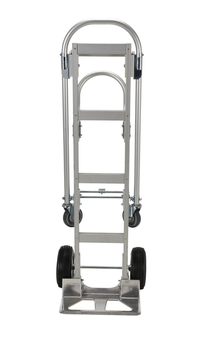 The deluxe Aluminum Hand Truck converts from hand truck to platform truck to maximize control for different types of loads. This hand/platform truck can transport boxes wherever they are needed. Transport loads smoothly and evenly over rough or uneven floors.
