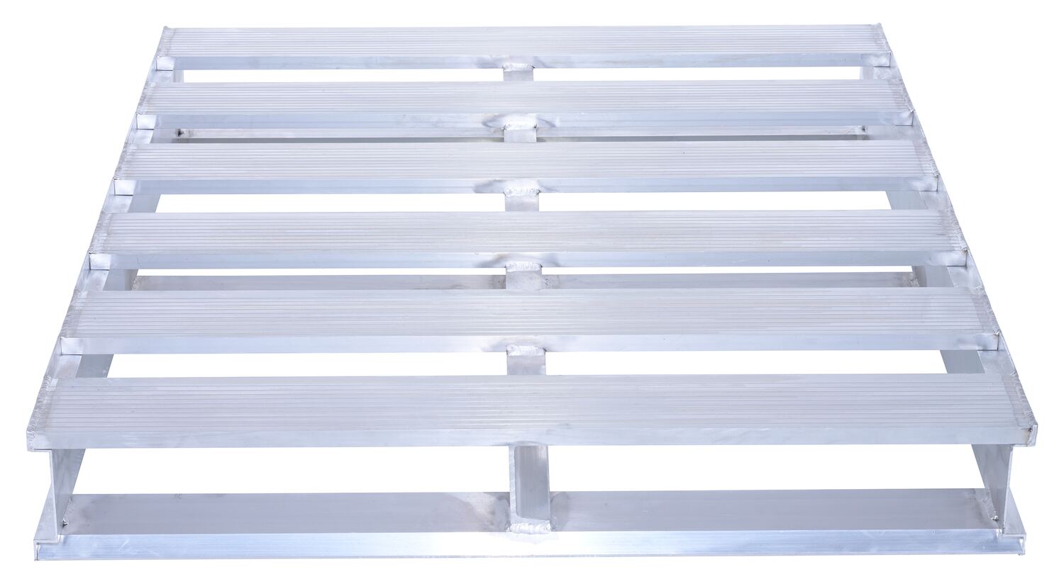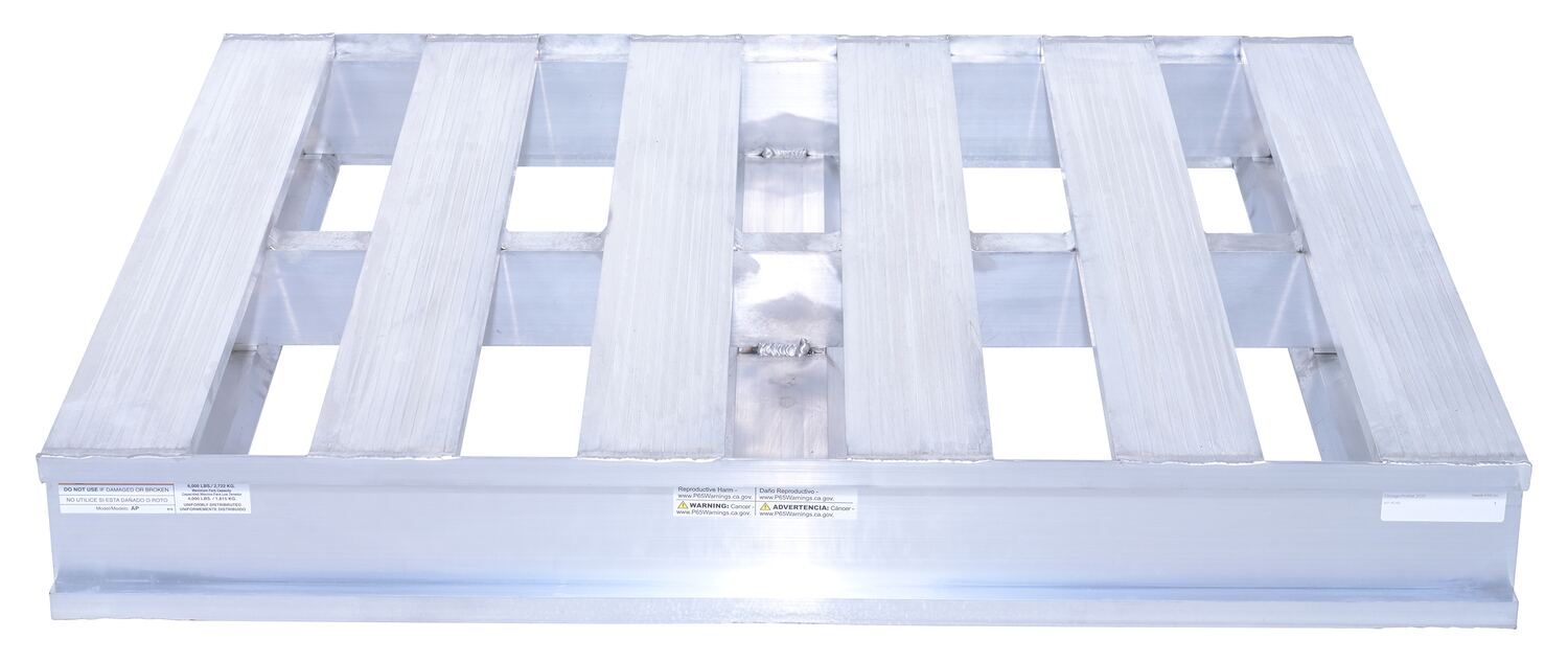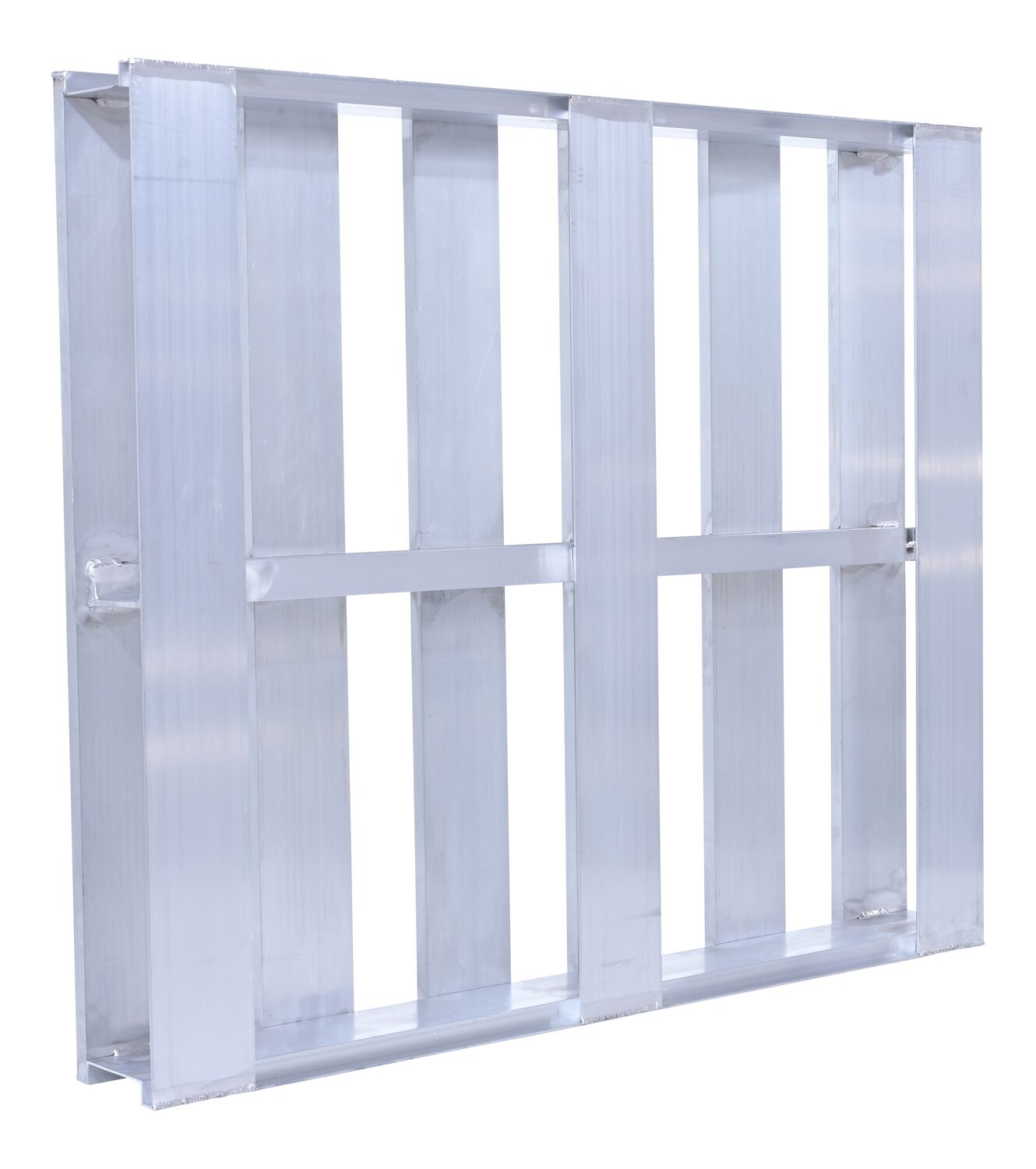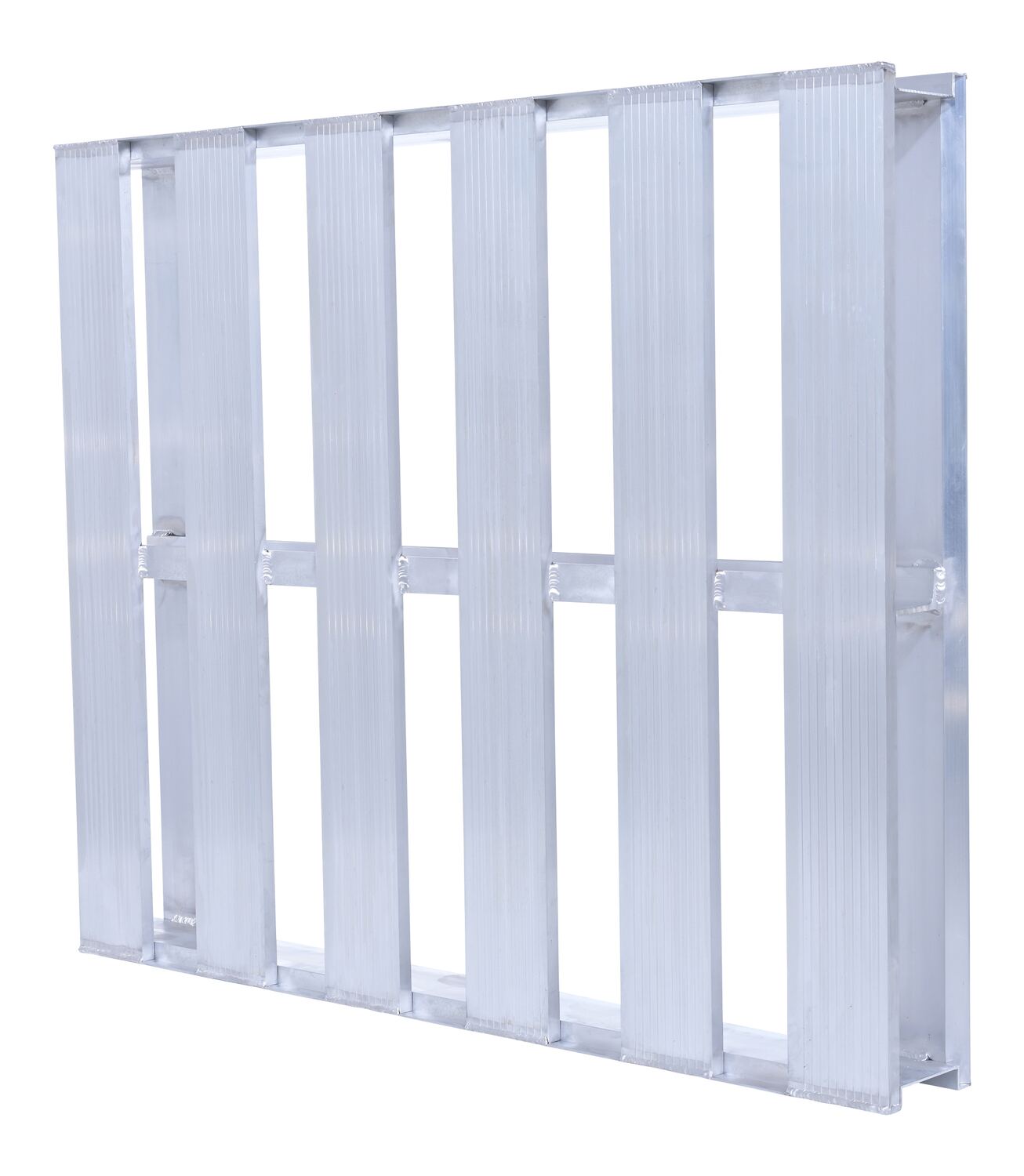 The welded Aluminum pallet is what the food and chemical industries have always wanted. The unit stands up to high-power steam, brushes, or pads. It's easy to clean with a power washer. Features a non-skid surface for easy transportation of all products. This pallet is durable and re-usable with a two-way entry for pallet and fork truck use.
