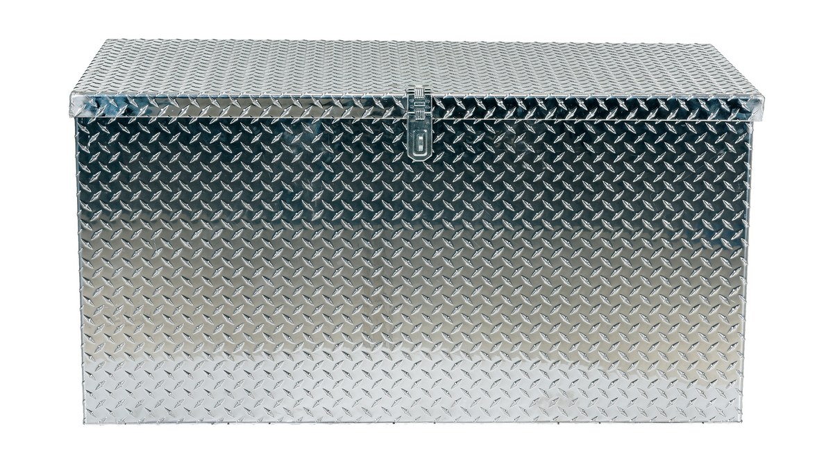 Aluminum Portable Tool Box 25-7/8 In. x 49-1/4 In. x 25-1/16 In. 2500 Lb. Capacity SilverSecure your tools and other belongings from theft with this Aluminum Tread Plate portable tool box. There is a safety double hinged hasp for padlock securing with padlock not included. Constructed of diamond tread plate material. Features two (2) sturdy handles for transporting.
