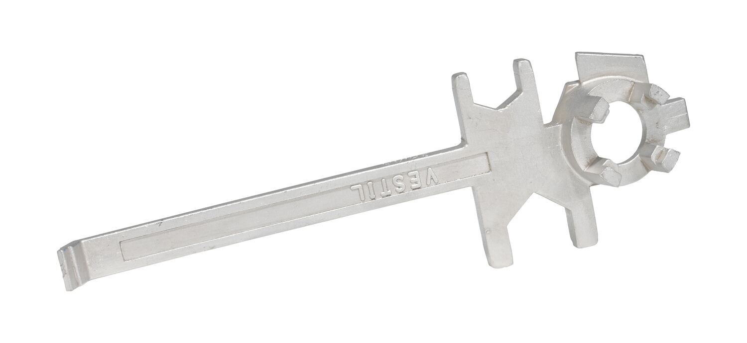 This multipurpose, single ended, cast aluminum drum Bung nut wrench not only opens and closes drum bungs or plugs, they also work as a bung wrench, ring wrench and faucet wrench all in one! Wrench fits all types of industrial drum plugs and bungs in metal or plastic. These wrenches will not bend, break or chip. Patent pending.
