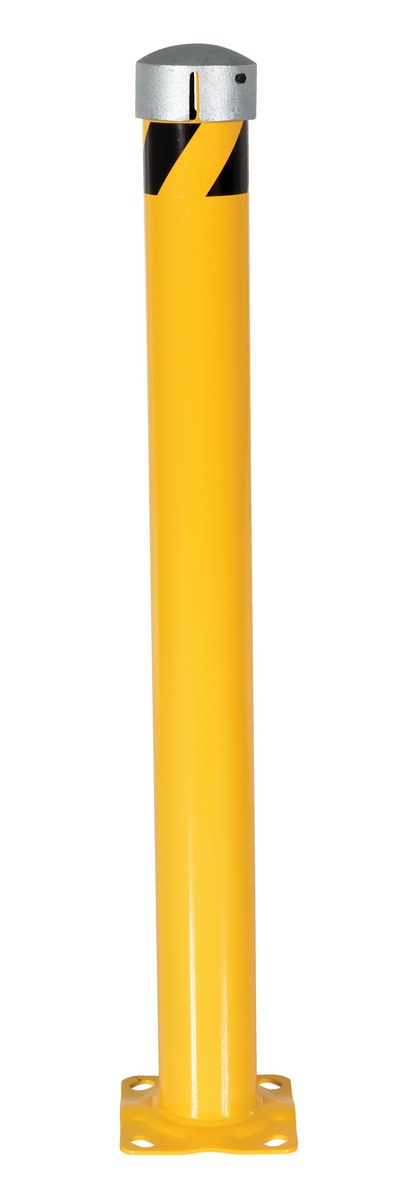 Steel Pipe Bollard with Removable Bolt-On Steel Cap and Slots 48 In. x 4-1/2 In. Yellow