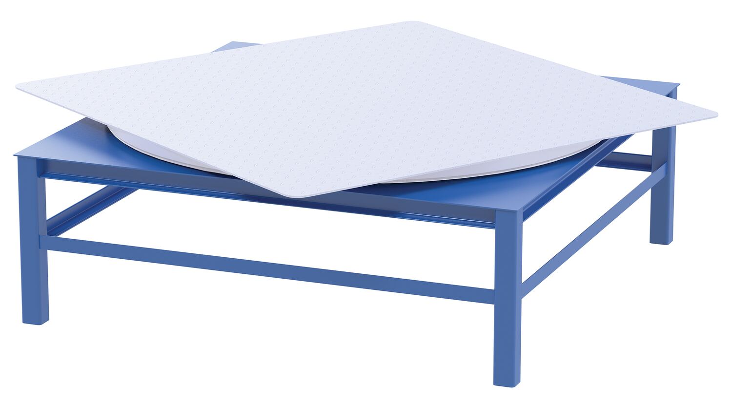 Optional elevated base for the manual carousel helps maintain products at an elevated height. A square design with four legs,one in each corner, for stability.
