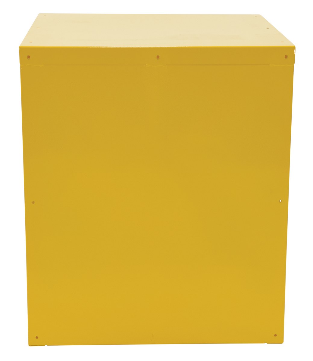 Steel Canadian LP Cylinder Storage Cabinet 32 In. x 30 In. x 35-1/2 In. 4 Cylinder CapacityDurable steel cabinet for storage of LP style cylinders. Cylinder storage capacity is based on cylinder size. Sides and door are made of expanded steel mesh. Bottom, back and top are made of solid sheet steel. Lockable doors protect cylinders (padlock not included). Base includes lag holes for securing unit to floor (hardware is not included). Rugged welded steel construction with safety yellow finish. Cabinet ships fully assembled.