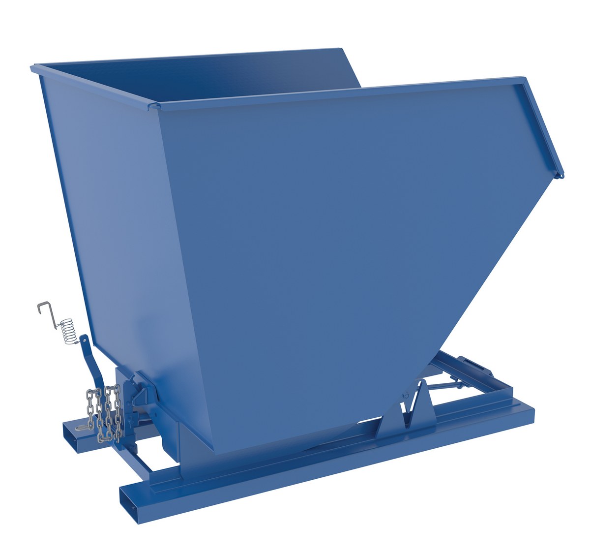 This Heavy Duty self-dumping steel Hopper with bumper release automatically dumps when bumper release contacts the front of the dumpster. Hopper returns to an upright and locked position automatically after it dumps. Also includes a cable that may be operated from the seat of the fork truck to manually dump the hopper. The included safety restraint should be properly secured to a fork truck before dumping. (Length dimension is measured at top of chute). Self-dumping hoppers facilitate compliance with OSHA general industry rule 29 CFR 1910.178(m)(5)(iii) by allowing lift truck operators to remain at the controls of their truck throughout the dumping process.